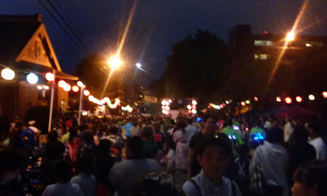 And here's a look at the street that was blocked off for the festival. You can see the streets covered with lanterns and many of the people dressed in traditional Japanese clothing such as Kimonos and Yukatas.
